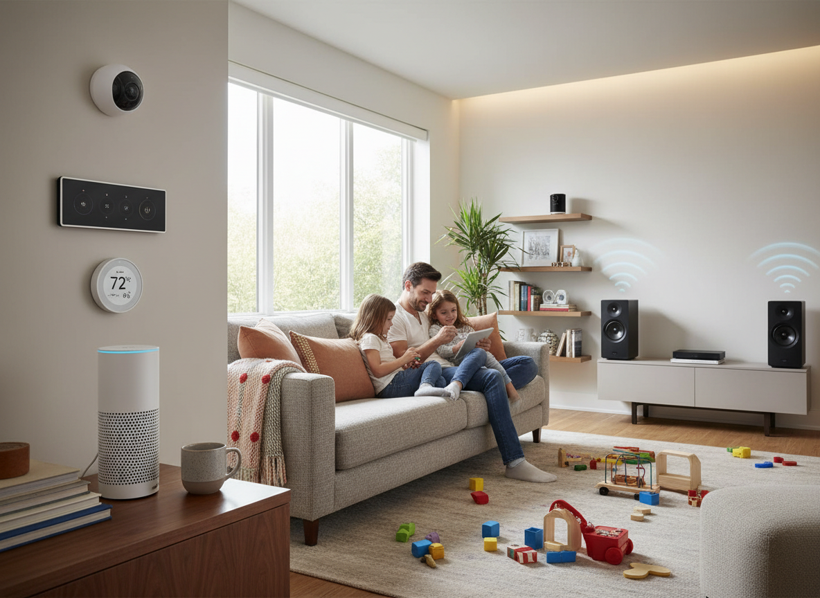 Lutron lighting, Google Nest, Alexa integration, and IP cameras.